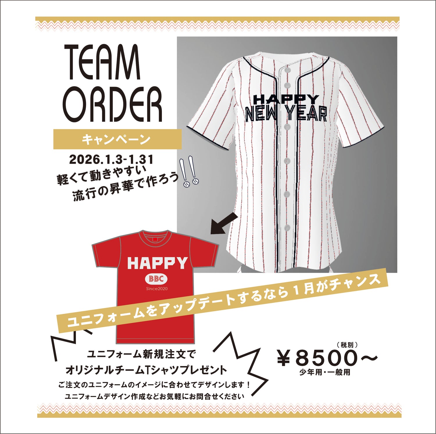 1月3日~1月31日までがユニフォームを新しくするチャンス!